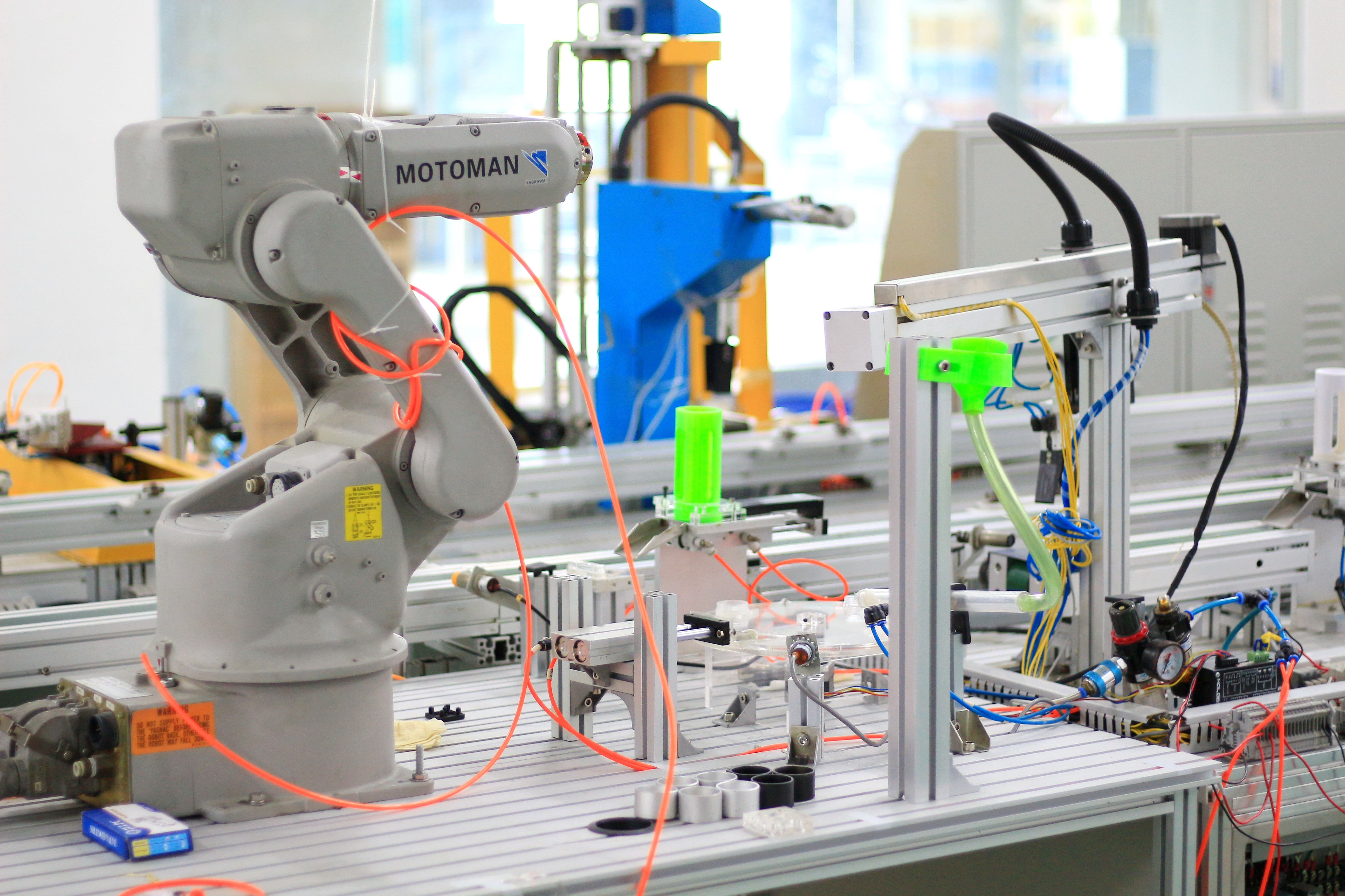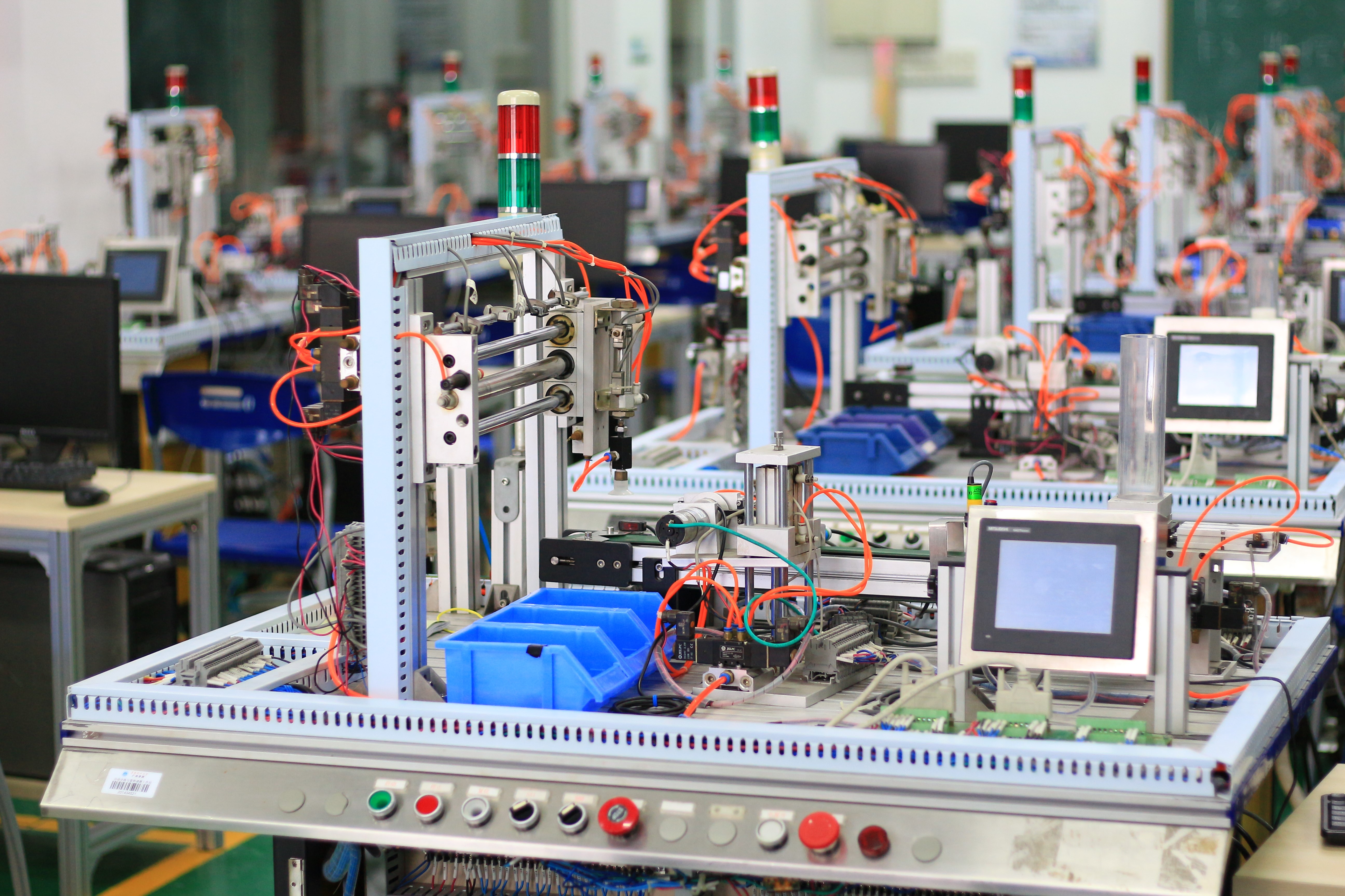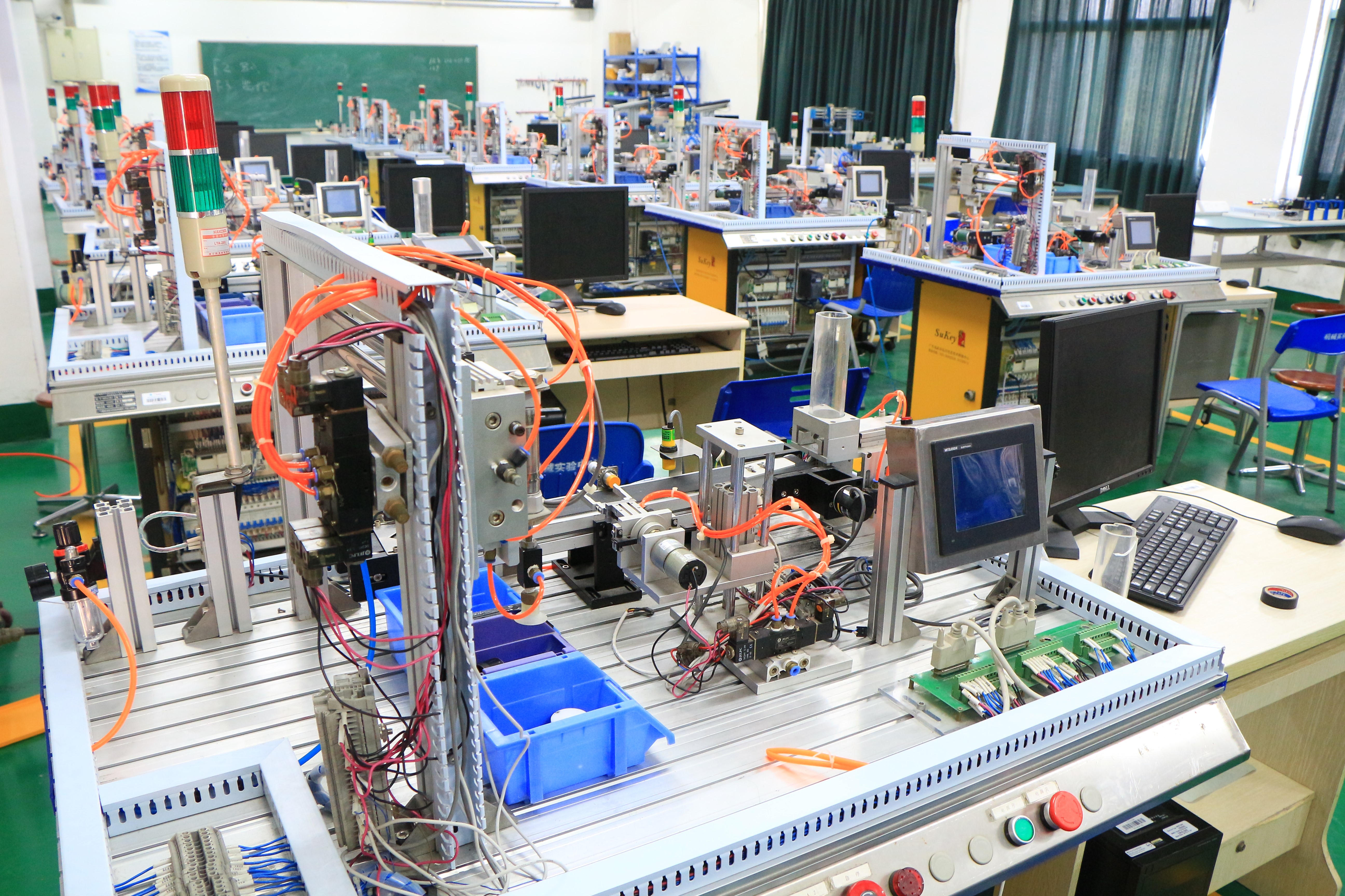 光机电系统实验室成立于2008年,占地面积170平方米,开设有PLC应用、变频器应用、传感器应用、工业触摸屏应用、工业网络通讯、机电一体化系统实训等课程,是工业自动化专项技术的重要培训基地。面向机械、机电、工业机器人专业开设专长拓展训练,以强化训练的形式训练学生在机电一体化方向上的综合能力,开设有《工业自动化技术强化训练Ⅰ》和《工业自动化技术强化训练Ⅱ》等开放性、综合性和设计性的实训课程。