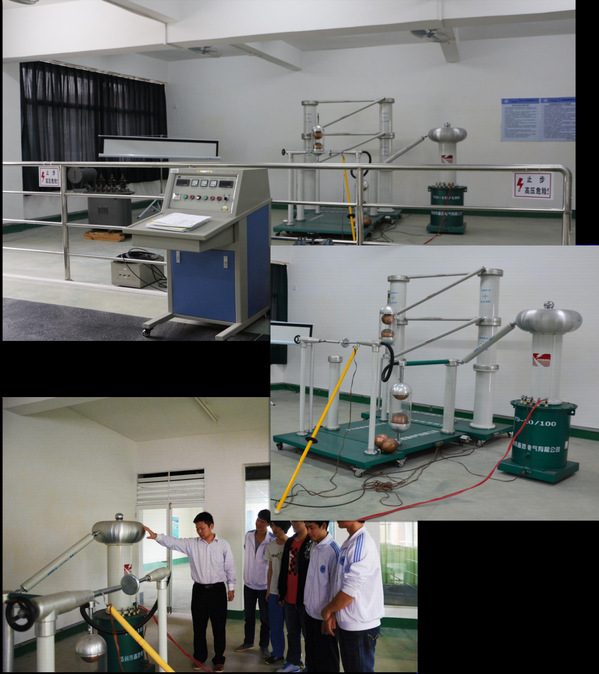 1、实验室概况:高电压技术实验室,是我院根据电气专业人才培养需要而设置的电气类专业教学实验室。成立于2008年,设备固定资产约31万,主要设备1台,通过该套多功能高电压教学实验系统,能完成均匀电场和不均匀电场的空气间隙的击穿实验、冲击电压放电实验、直流发生器实验等高电压技术课程实验。主要承担电力系统及其自动化方向的常规实验教学及实训课程。