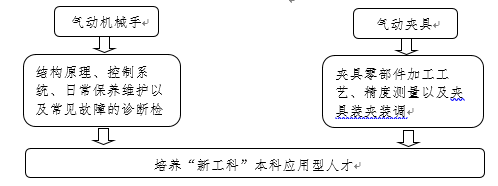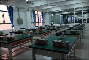 实训室采用了一种新的电气多工位夹具实训装置,具有钳工零件训练、多工位气动装夹、气动机械手调拆装训练多重学习功能,提供包含了机械夹具制作、多工位装夹装调和气动机械手拆装训练三位一体的综合实训项目。每套实训装置拥有1个气动机械手和2个气动夹具,提供3个实训工位。