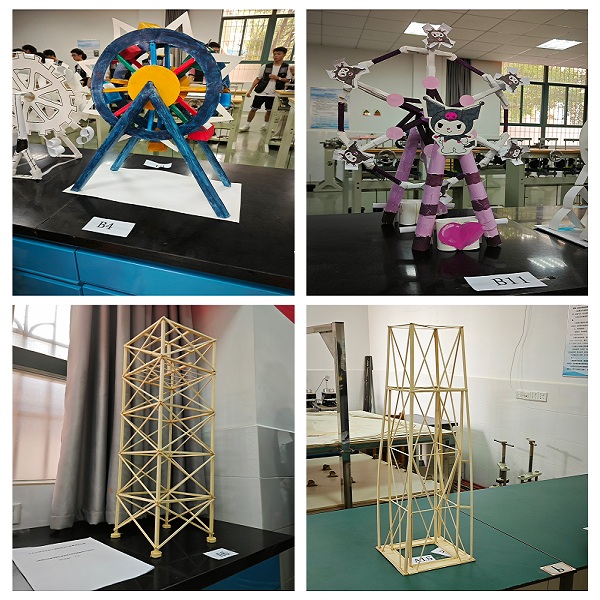 挑战组评比要求高耸塔式结构模型既要轻重量同时具备高抗荷载能力。参赛队伍通过运用专业知识、对高耸塔式结构模型受力分析,完成一、二、三级加载。这些作品不仅在设计理念上独具匠心,更在结构稳定性和承载能力上表现出色,充分展现大学生们的创新精神和工程实践能力。