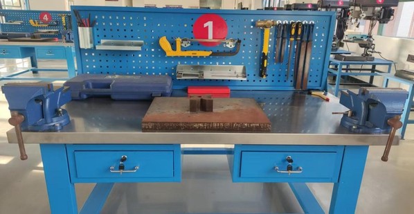 钳工工作台,台虎钳,砂轮机,台式钻床,立式钻床,摇臂钻床。