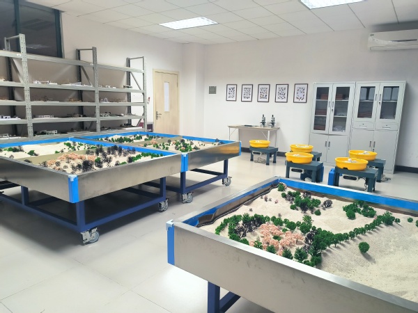 风景园林实验室成立于2023年,室内使用面积为47.56平方米,此外还在A10屋顶花园和一楼中庭广场开辟有新的学生专业实践基地超600平方米,进一步拓展了学生实践场地,可以较好的满足专业学生进行实验教学和各类课外活动。该实验室配备景观模拟沙盘、光学显微镜、陶土拉胚机、电子手绘板等设施设备,主要承担风景园林专业《园林植物学》、《园林植物识别》、《风景园林(一)(二)》、《植物景观规划设计》、《风景园林工程》、《风景园林工程材料与工艺》等课程的教学任务。为学生建立以环境可持续为导向,以协调自然环境与人文环境为基础,研究景观要素为主的空间环境的规划与设计、建设与管理提供学习锻炼的平台。
