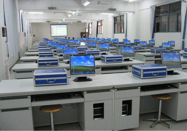 本实验室位于B2-303,占地面积约261m2,是面向工科专业学生的教学实验室,能同时容纳120名学生进行实验操作。主要承担面向全校工科专业的课程《电子工艺实习A》中的“Multisim电路仿真”和“PCB电路板的设计”、电气工程学院的课程《PLC控制技术》、《单片机设计技术》和《电气CAD绘图》等。通过开设的实验项目,使学生掌握实际应用技能、培养学生的动手能力,为学习后续课程及从事科学研究工作打下一定的基础。